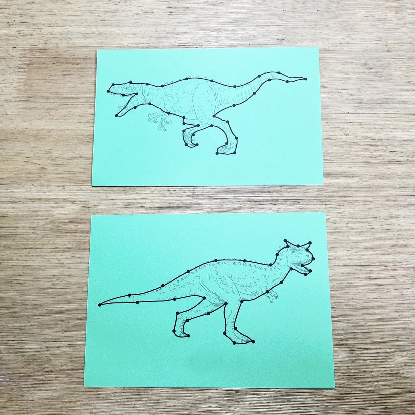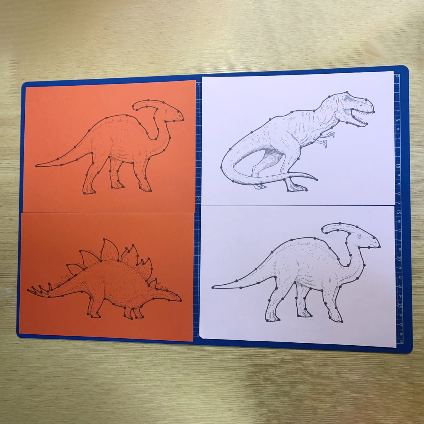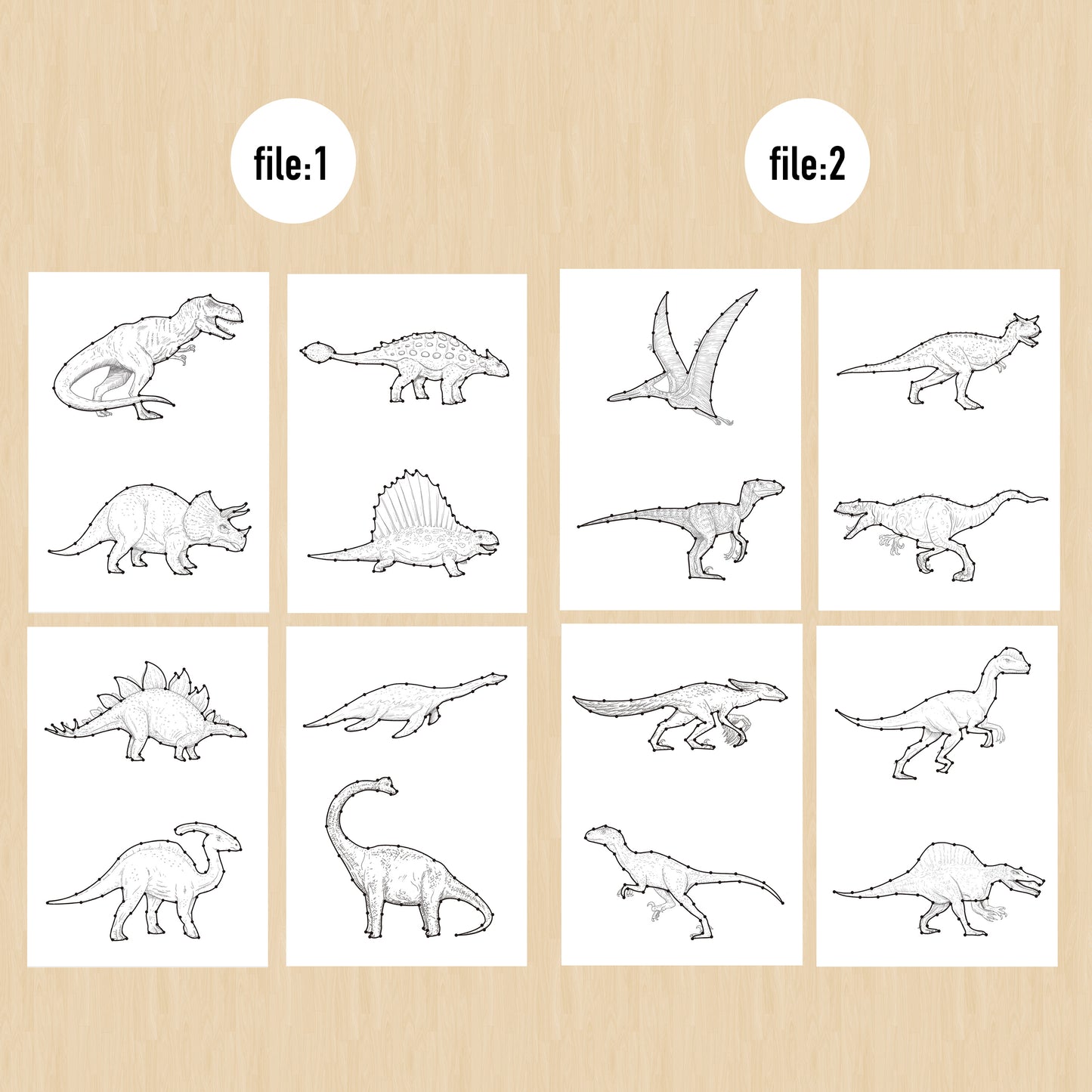 The activity is simple and engaging. Start by printing the templates on A4-sized colored cardstock. Place the paper on a corkboard and use a pushpin or punch tool to make small holes along the dotted lines. For younger children (under 3 years old), adults can prepare the holes in advance. Once the template is ready, children can use a yarn needle and thread to sew along the outlines of each dinosaur. After sewing, the finished dinosaurs can be enjoyed as coloring pages or proudly displayed as artwork. Completing all 16 dinosaurs offers a satisfying sense of achievement!