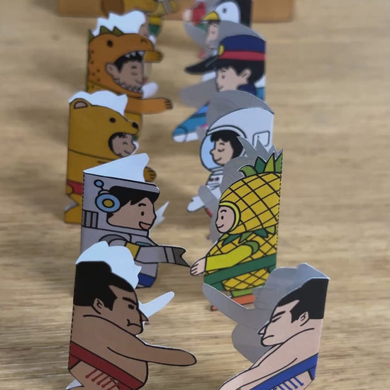 Enjoy the “Tonton Paper Sumo” craft anywhere — at home, while traveling, or visiting family. Simply color, cut, and assemble to enjoy both the making and the playing. Lightweight and portable, it’s easy to take anywhere.