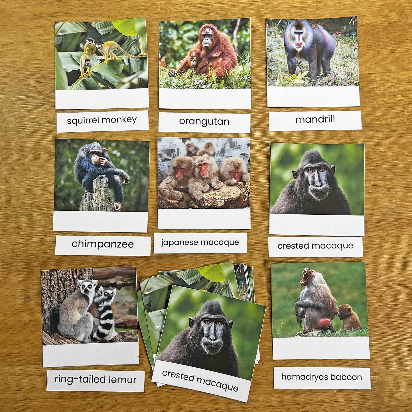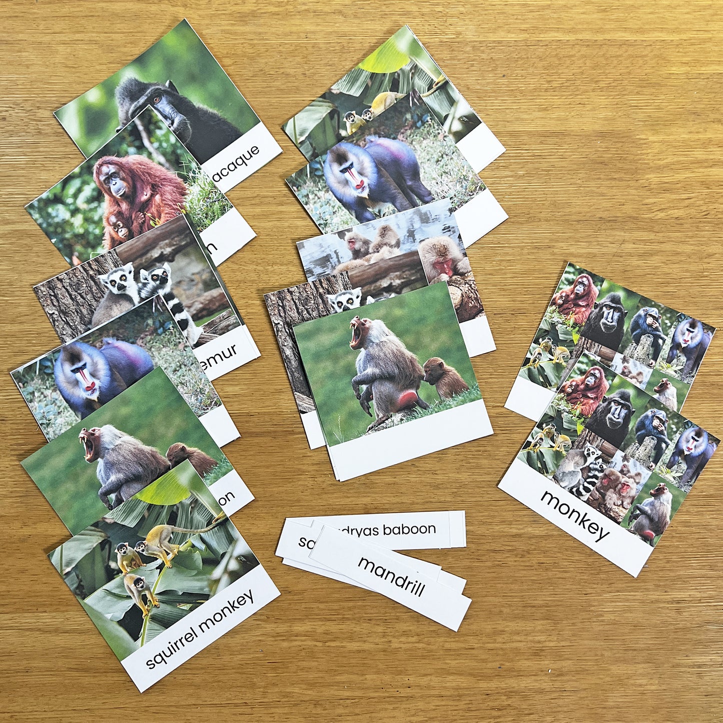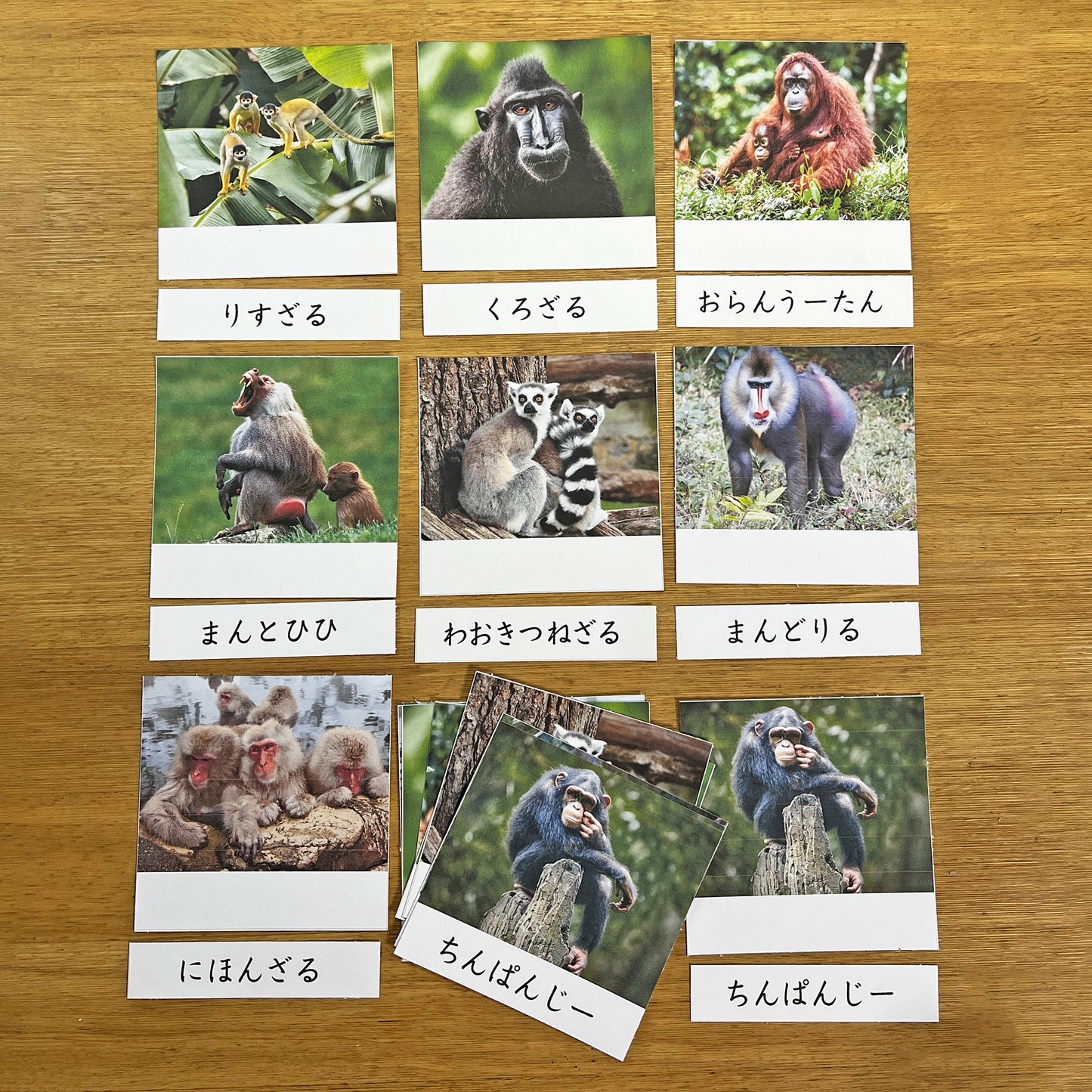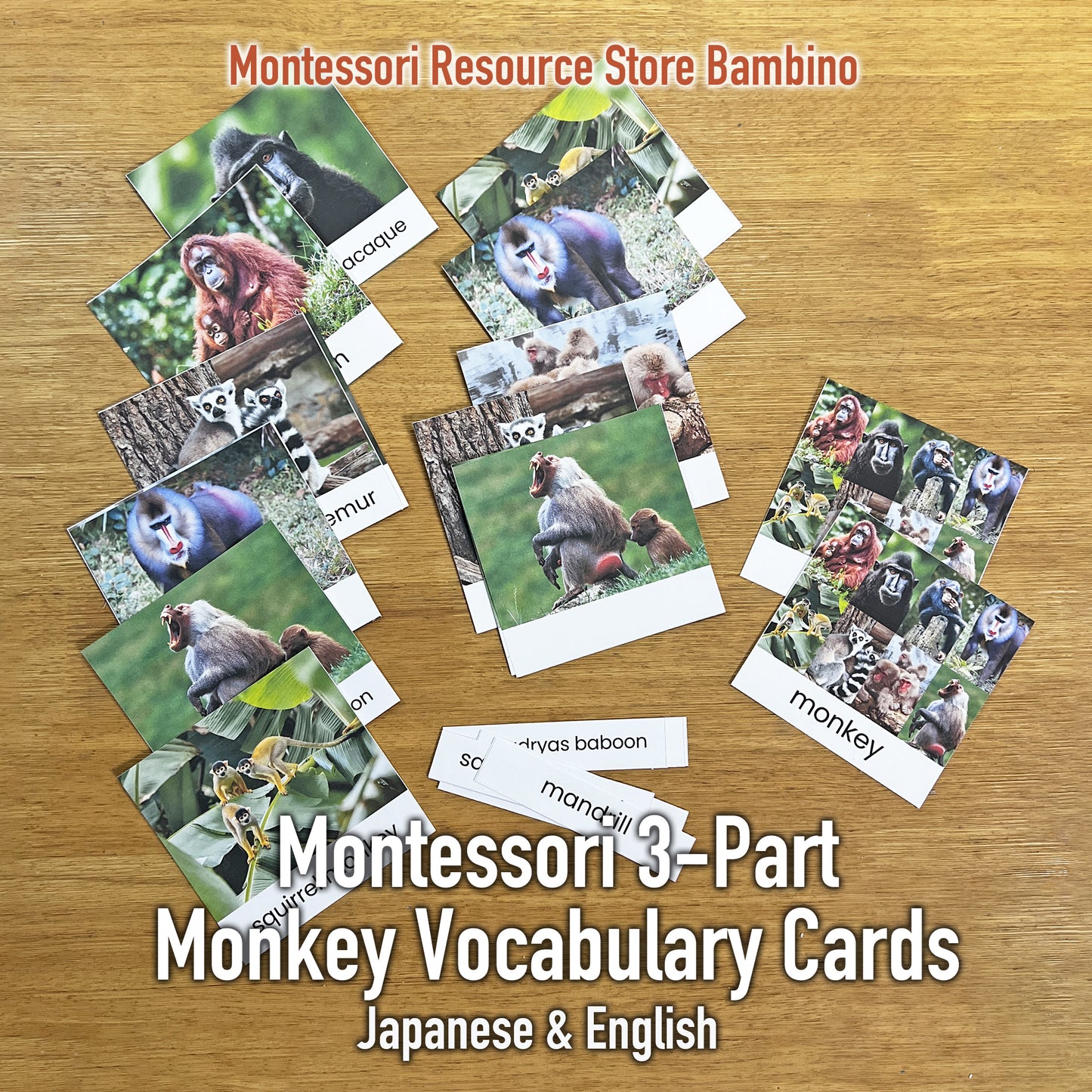 蒙特梭利三段式词汇卡——猴子(中日英对照)