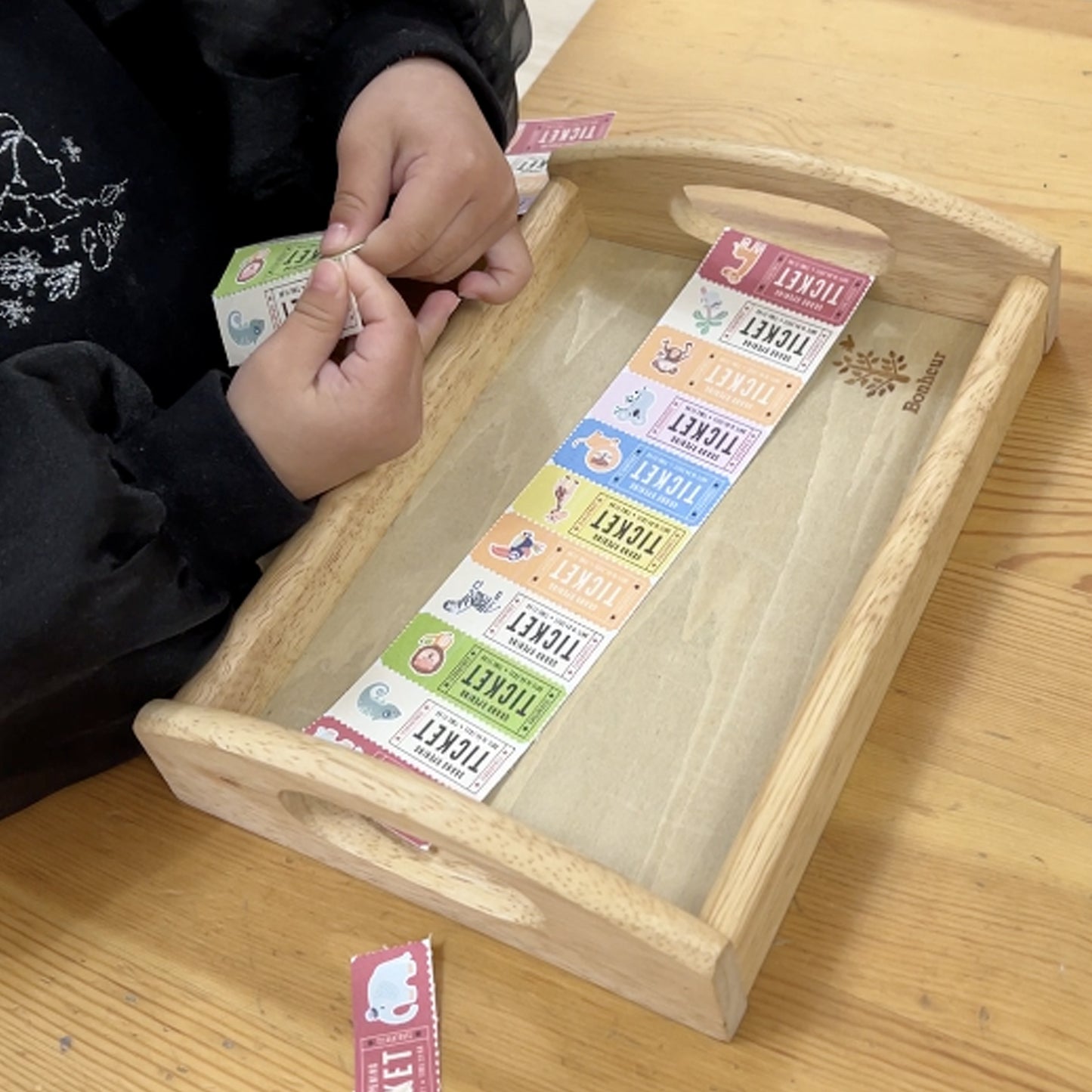 家长可以提前使用打孔刀制作“动物门票”,孩子则通过手指沿着虚线撕开,享受其中的乐趣。